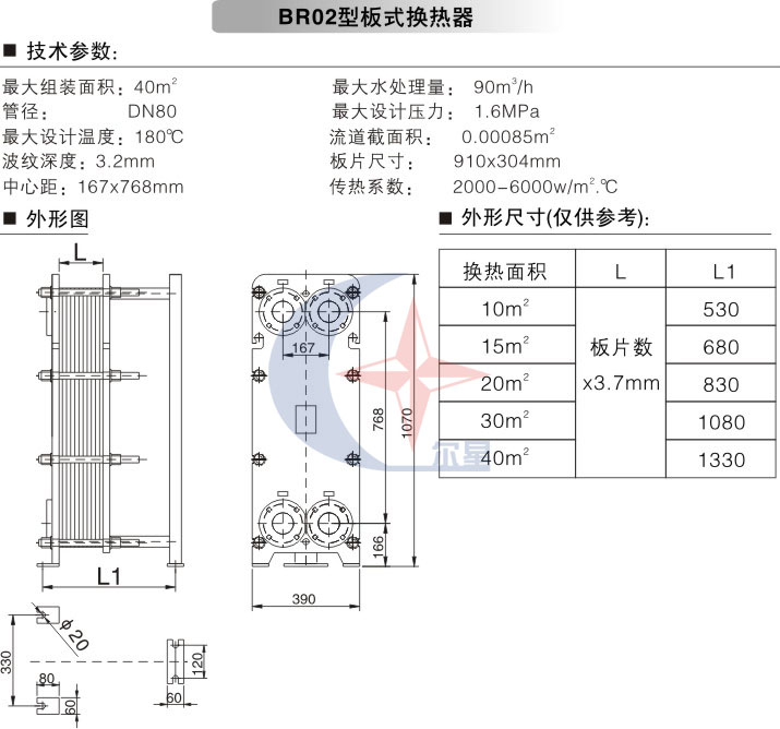 BR02型板式換熱器 是一種新型的節(jié)能熱交換裝置,具有傳熱效果高、結(jié)構(gòu)緊湊、占地面積小、 操作簡便,清洗、拆卸、維護(hù)方便,容易改變換熱面積或流程組合等優(yōu)點(diǎn)。 板片人字形波紋,介質(zhì)流動(dòng)形成湍流狀態(tài),粘膠式密封墊片。傳熱系數(shù)...