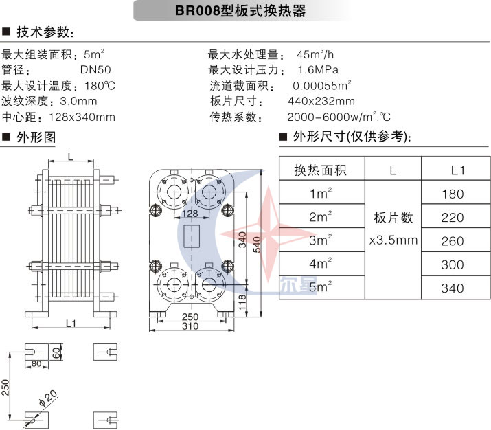 BR008型板式換熱器 是一種新型的節(jié)能熱交換裝置,具有傳熱效果高、結(jié)構(gòu)緊湊、占地面積小、 操作簡便,清洗、拆卸、維護(hù)方便,容易改變換熱面積或流程組合等優(yōu)點(diǎn)。 板片人字形波紋,介質(zhì)流動(dòng)形成湍流狀態(tài),粘膠式密封墊片。傳熱系...